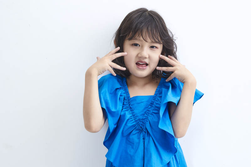 白色背景下頑皮可愛的雙胞胎小女孩