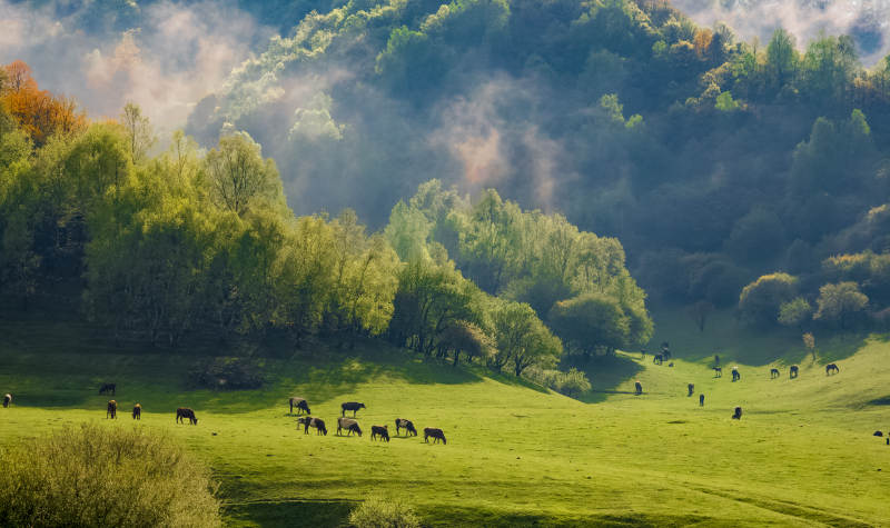 晨光中的綠野牧歌
