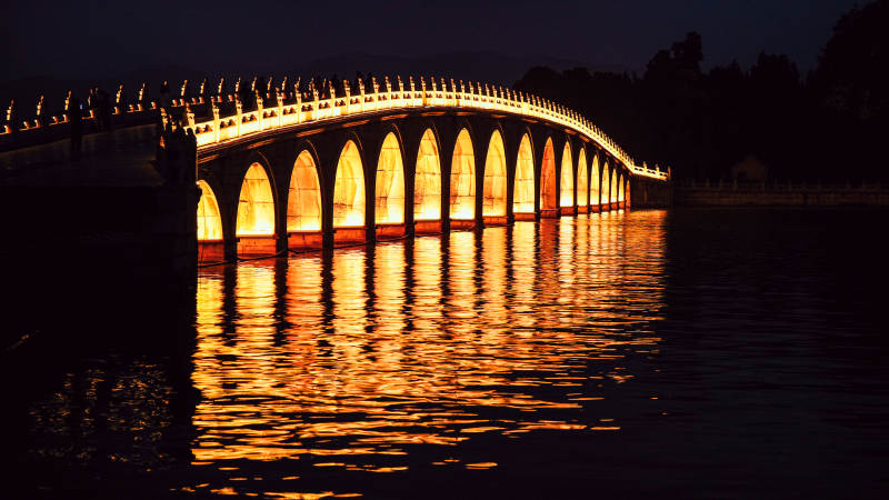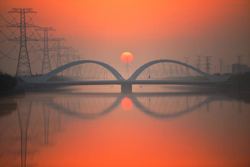 秋天清晨的蘇州工業(yè)園區(qū)李公堤金光穿洞風景