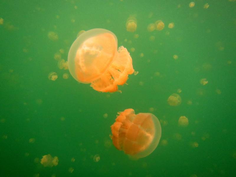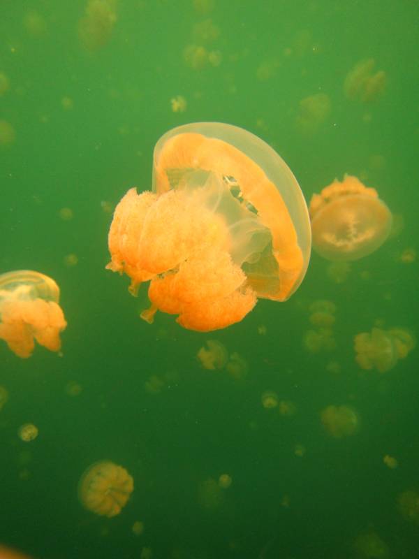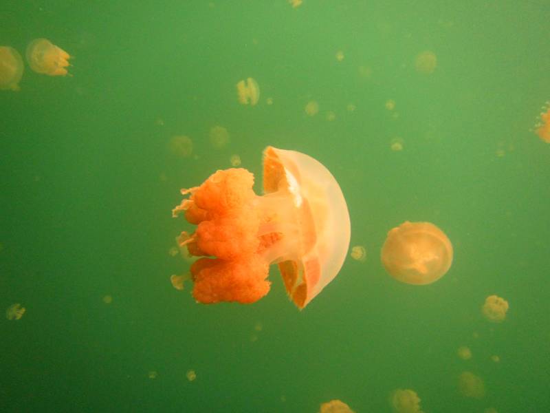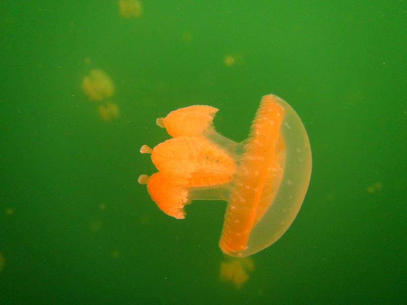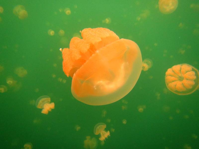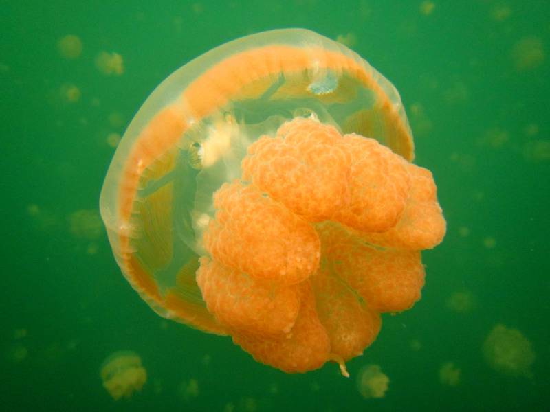 水母 海洋生物 發(fā)光 藍(lán)色背景 紅色條紋 水中漂浮 自然美 生物發(fā)光
