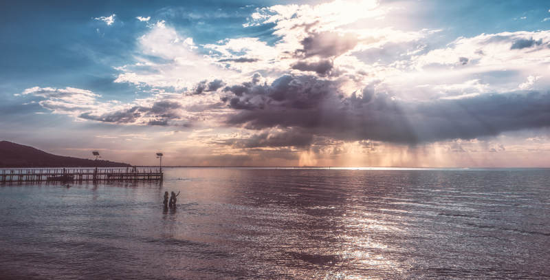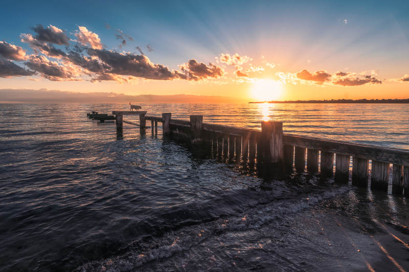 夕陽(yáng)下的墨爾本st kilda碼頭帆影