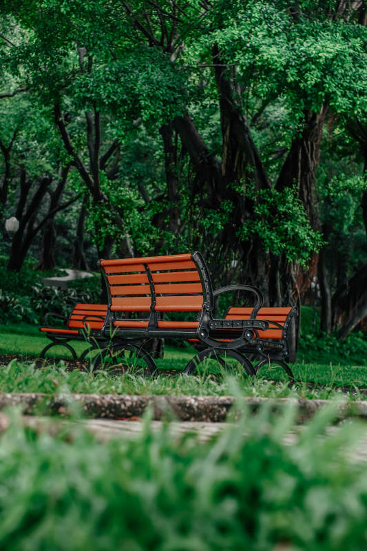 公園長椅與綠樹成蔭