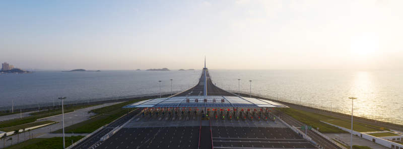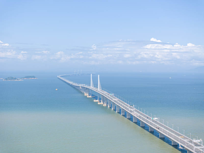 城市景觀 海灣 橋梁 高樓大廈 道路 水面 天空 建筑群 沿海地區(qū) 現(xiàn)代城市 港珠澳大橋 人工島 珠海 澳門