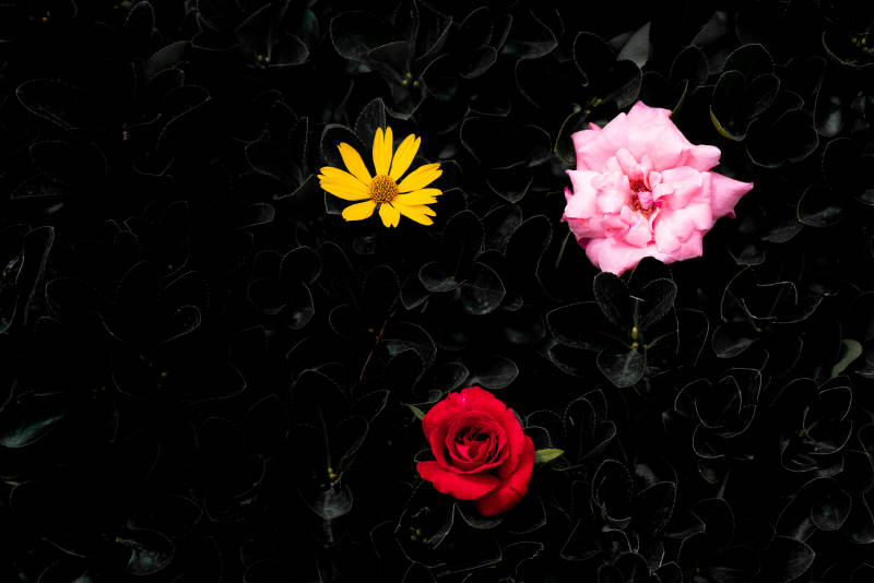 紅玫瑰與黃雛菊的靜謐