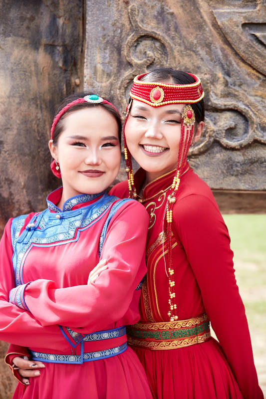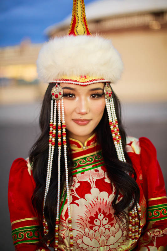 身穿蒙古族部落華麗傳統(tǒng)服飾的蒙族姑娘