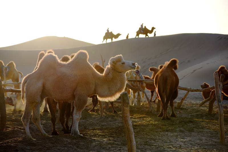 沙漠 沙丘 兩人 拉手 玩耍 戶外活動(dòng) 冬季服裝 沙地 娛樂 自然景觀