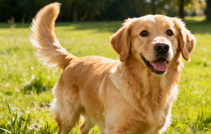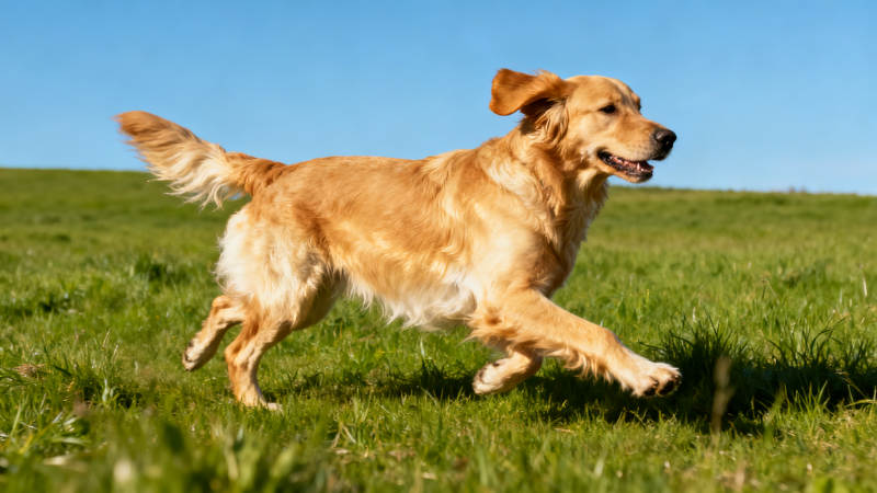 金毛奔跑在綠茵上