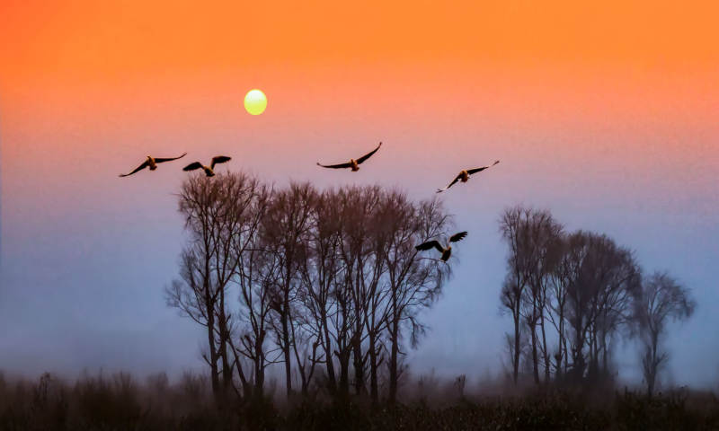 晨曦飛鳥剪影