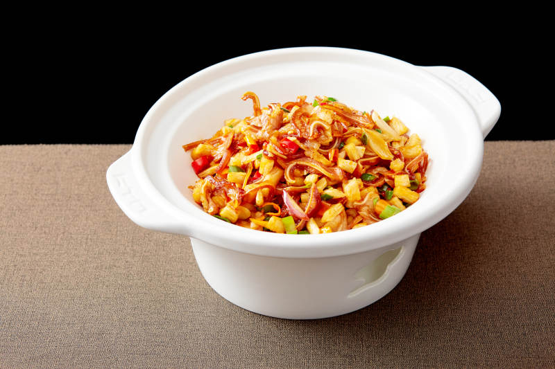 砂鍋 蒜頭 紅椒絲 綠蔥 湯汁 白色餐具 黑色背景 中式菜肴 美食攝影 燉羊骨煲
