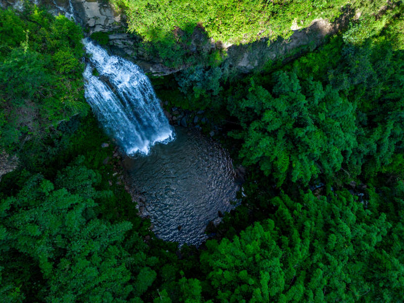 德天瀑布 瀑布 山峰 綠色 自然景觀 水花 藍(lán)天 森林
