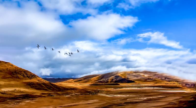 雪山溪流牦牛群(遠(yuǎn)眺川西雪山)
