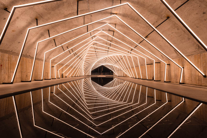 黑暗走廊 幾何線條 光影對(duì)比 現(xiàn)代建筑 透視效果 黑白影像 空間感 抽象藝術(shù) 長廊 窗戶格柵