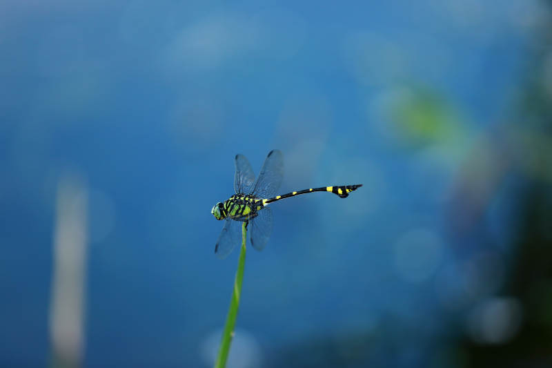 蜻蜓靜立 藍水映襯