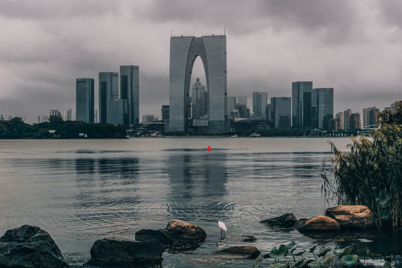 杭州臨平大劇院湖畔高樓倒影