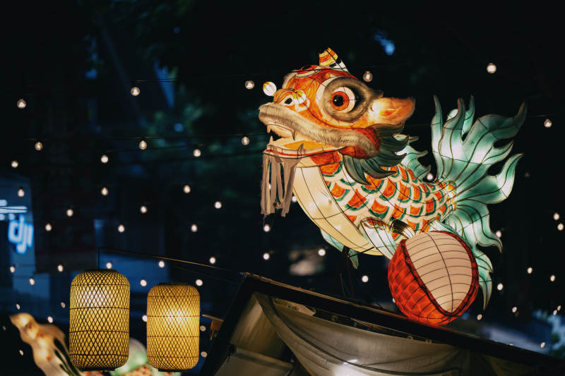 花燈 燈會(huì) 月亮 荷花 燈光 夜景 荷葉 紫色花朵 水面 裝飾 藝術(shù)裝置