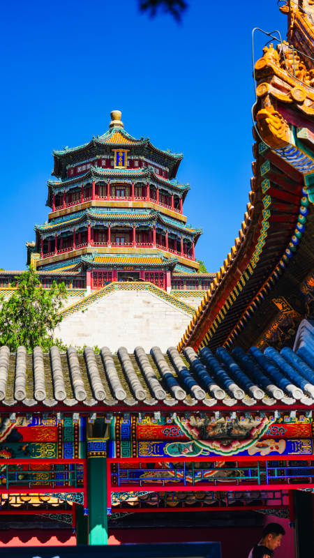 沈陽(yáng)故宮大政殿金龍戲珠彩繪飛檐