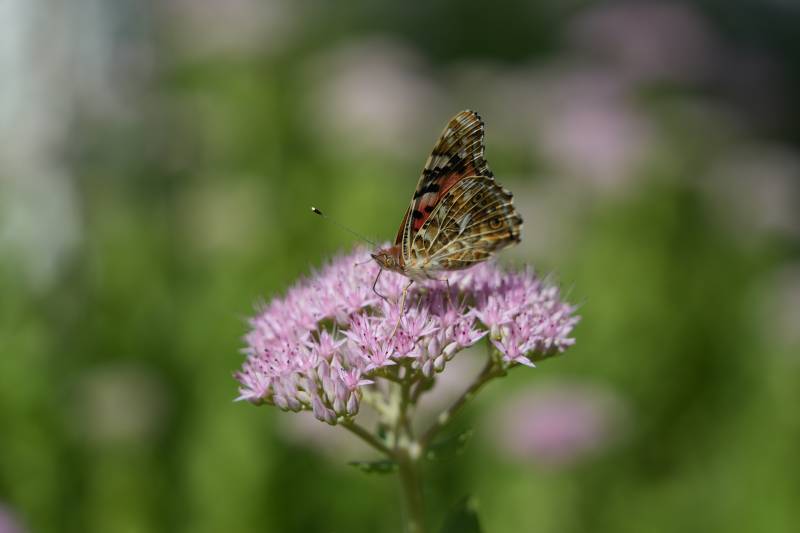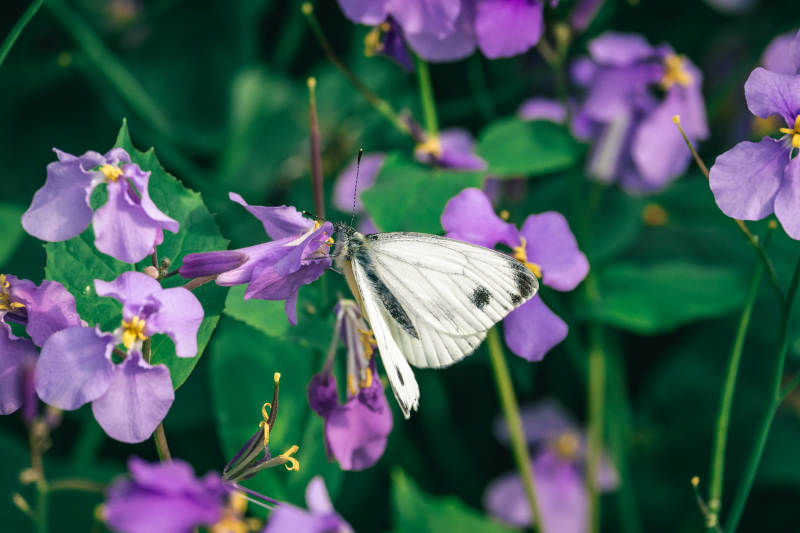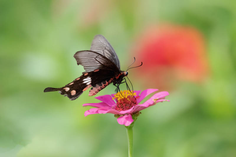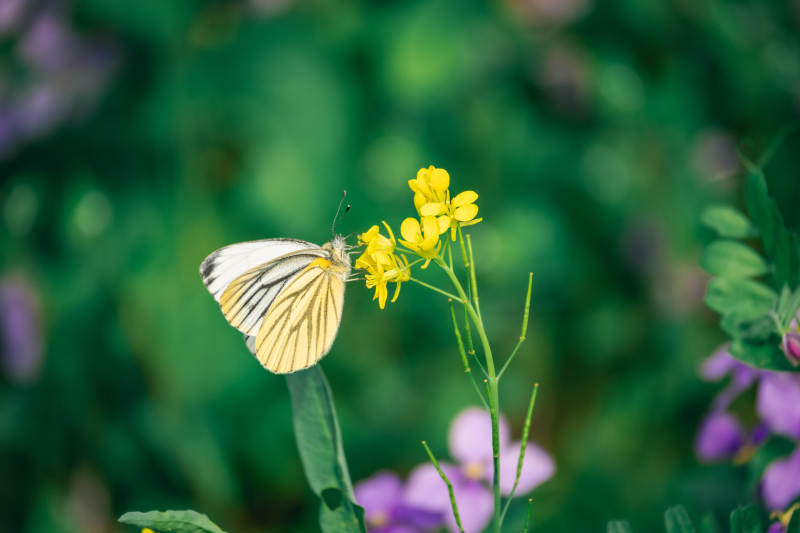 蝶影斑駁靜臥石上