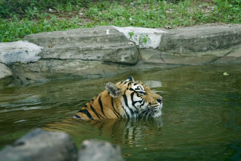 老虎 白虎 幼虎 親昵 水邊 動(dòng)物 野生動(dòng)物 橙色條紋 黑白條紋 自然棲息地