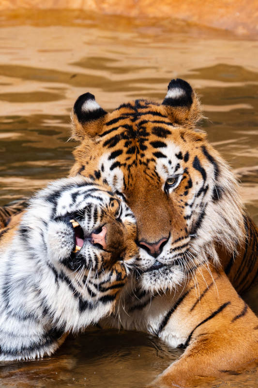 虎父與幼崽親昵