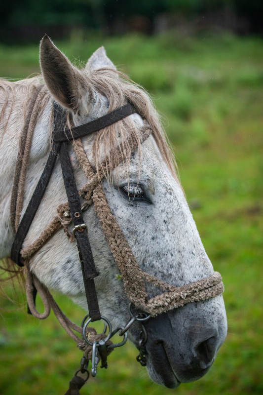 灰馬靜立綠野中
