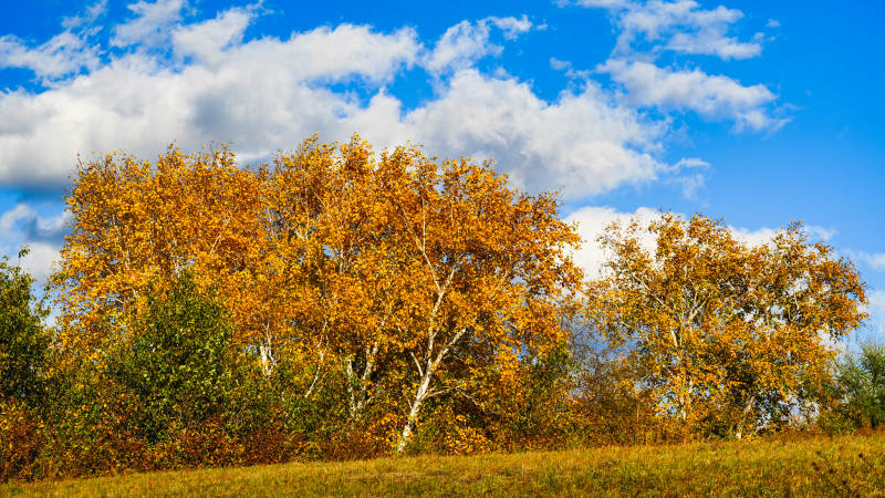 烏蘭布統(tǒng)秋日山坡金葉樹