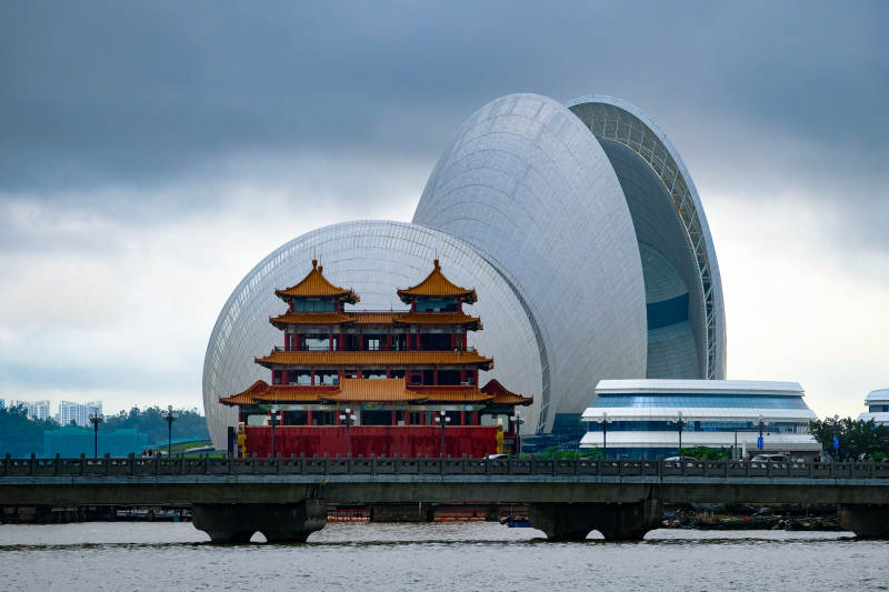 現(xiàn)代建筑與古塔相映--珠海大劇院