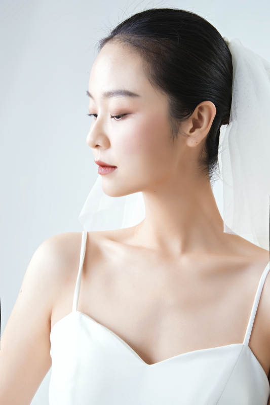 棚拍白色背景下的潔白婚紗新娘美妝
