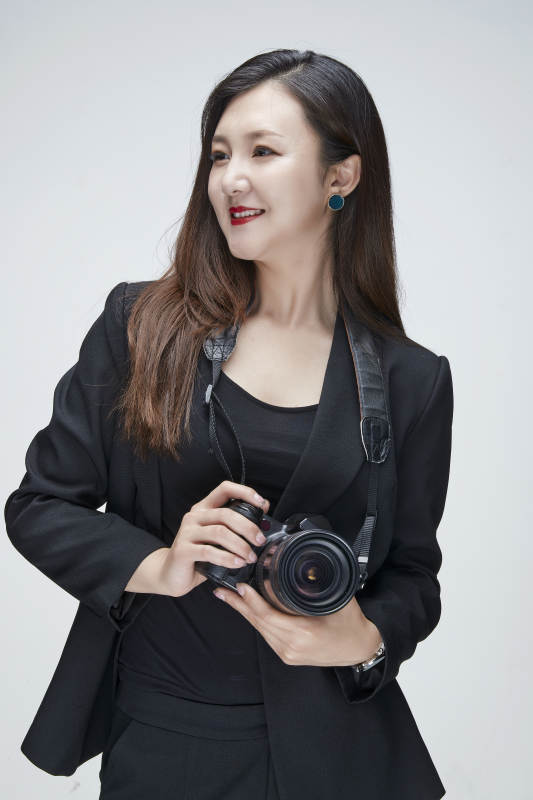 棚拍白色背景亞洲青年女性攝影師