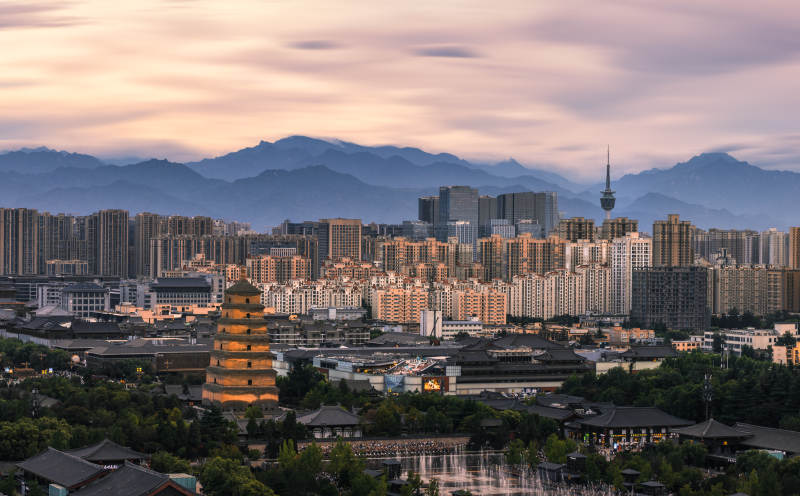 古城風貌與現(xiàn)代都市相融-大雁塔攬月閣同框