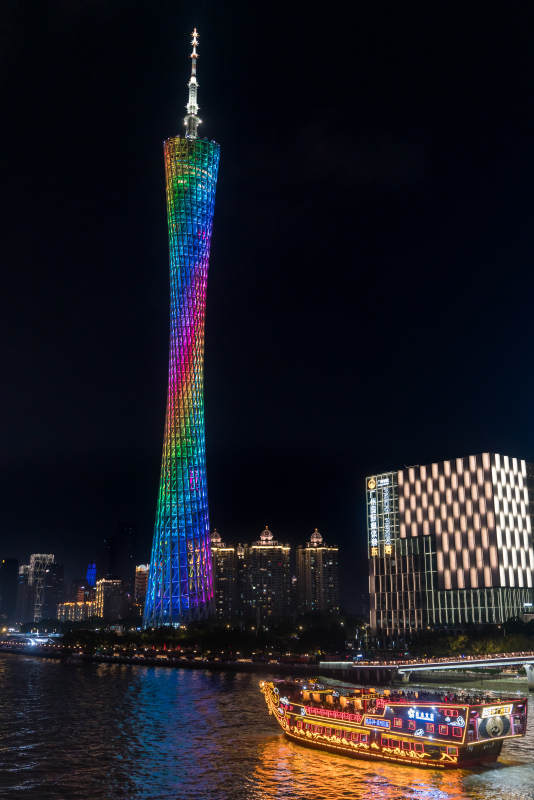 廣州珠江畔廣州塔與獵德大橋的晚霞黃昏